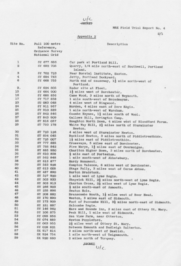 Zgodnie z odtajnionymi dokumentami MRE Porton Down, ostatecznie wybrano południowe Dorset jako miejsce przeprowadzenia prób, ponieważ spełniało ono trzy ważne i nadal aktualne wymagania.